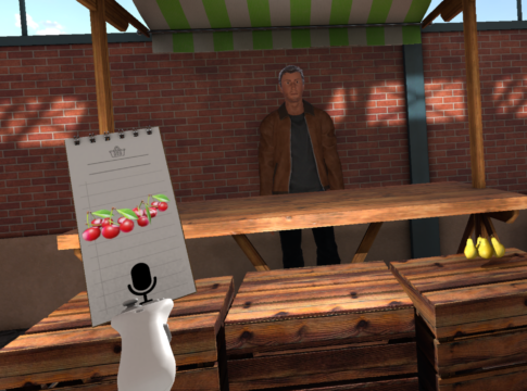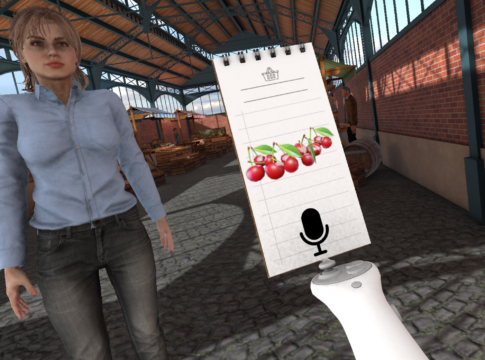 • Des tâches d’évaluation linguistique typiques ont été mises en œuvre dans un environnement de réalité virtuelle immersive. Les patients interagissent avec des avatars pour demander, par exemple, ce qu’ils veulent acheter, pour pointer du doigt ce qu’on leur demande de prendre ou pour décrire l’environnement qui les entoure.